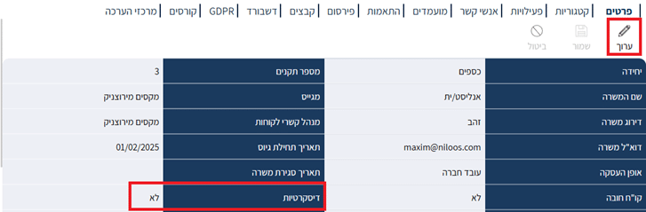 בלשונית “ניהול” , גשו לשדה “דיסקרטיות” ובחרו באפשרות “כן”