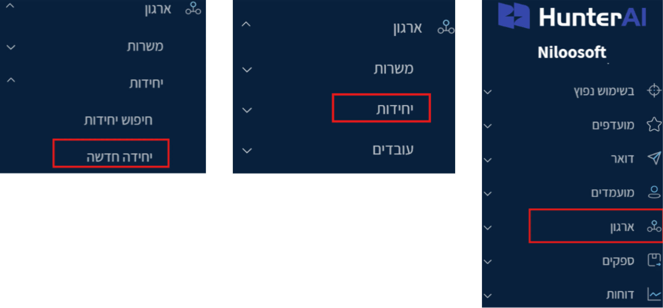 (לקריאה נוספת בנושא – ראו את המאמר “איך ליצור עובד חדש במערכת”) - להוסיף יחידות כפופות ליחידה הראשית.