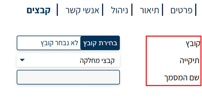 בעמוד “קבצים” ניתן להעלות מסמכים רלוונטיים ליחידה, כגון חוזים, מסמכי העסקה, חשבונות ועוד: