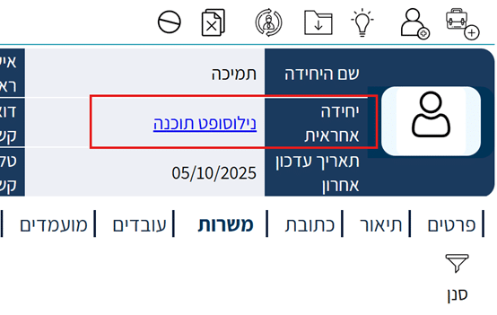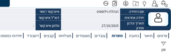 בסיום השלבים תיפתח כרטיסיית היחידה במערכת: