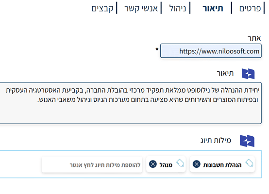 - הזינו את אתר החברה או היחידה (אם קיים).