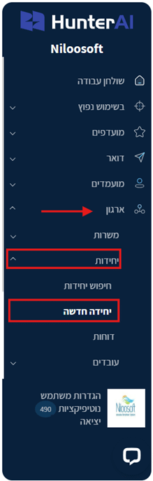 איך מקימים כרטיס יחידה במערכת ניהול משאבי אנוש וגיוס כח אדם Hunter AI?