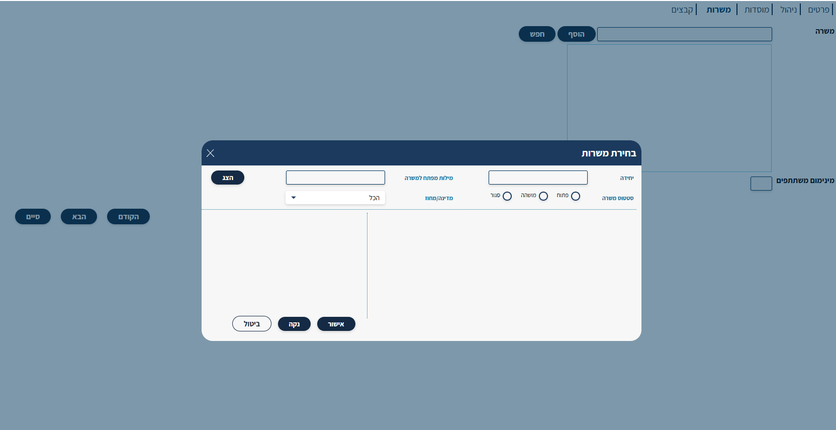 חלונית בחירת המשרות לקישור לקורסים עודכנה ומאפשרת: