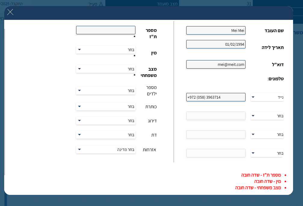 5. שיפור מנגנון הפיכת מועמד לעובד – חיווי שדות חובה