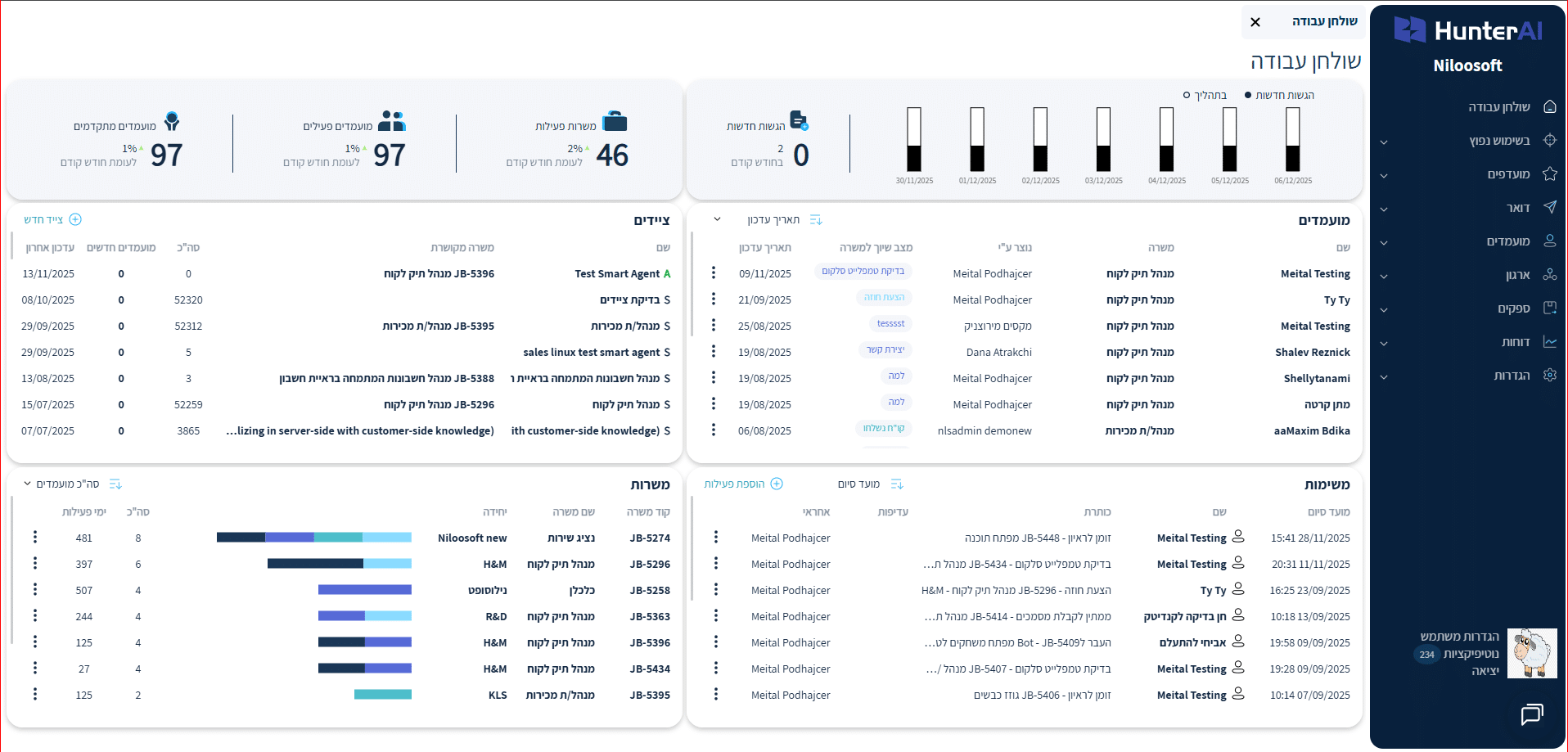 הדשבורד מעניק שקיפות מלאה ויכולת ניתוח קלה ומהירה – כלי מצוין לצוותי הגיוס, התמיכה והמכירות לייעל תהליכים ולקבל החלטות מבוססות נתונים.