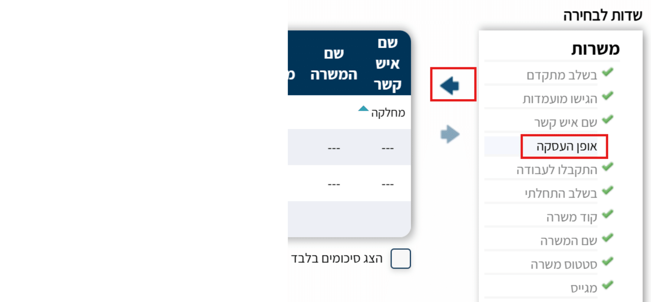 אם רוצים להוסיף שדה חדש (לדוגמה: אופן העסקה):