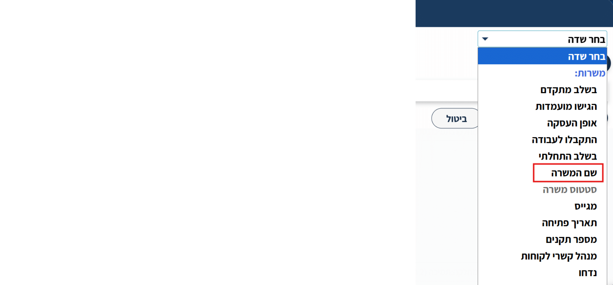 בוחרים את שדה הסינון — לדוגמה: שם המשרה (אם נרצה שהדו”ח יתמקד רק במשרה אחת )