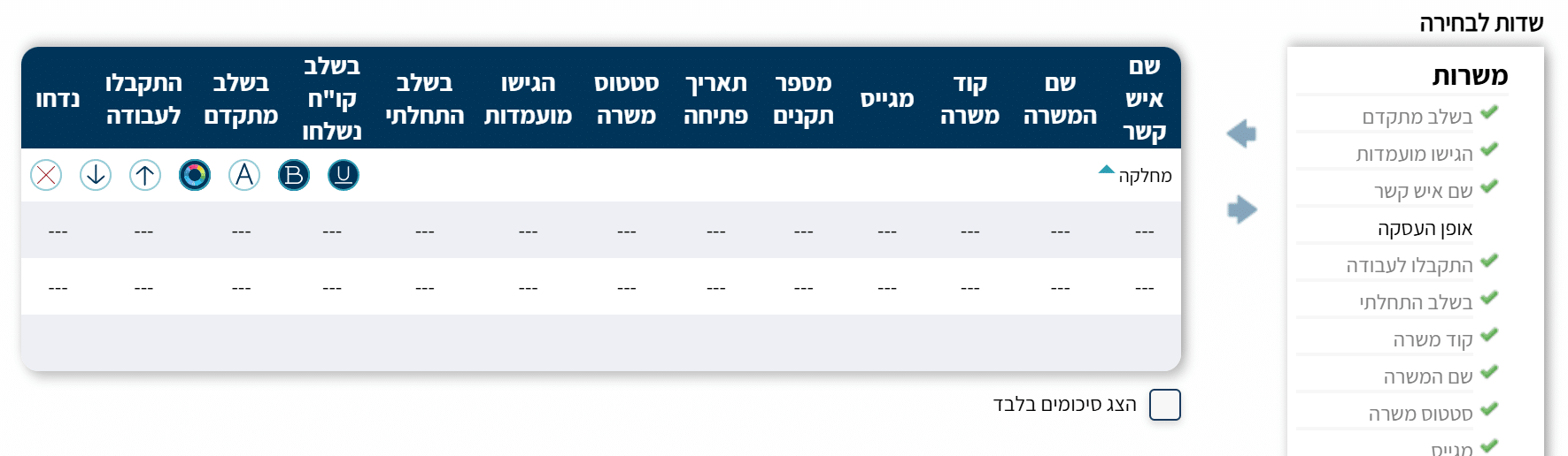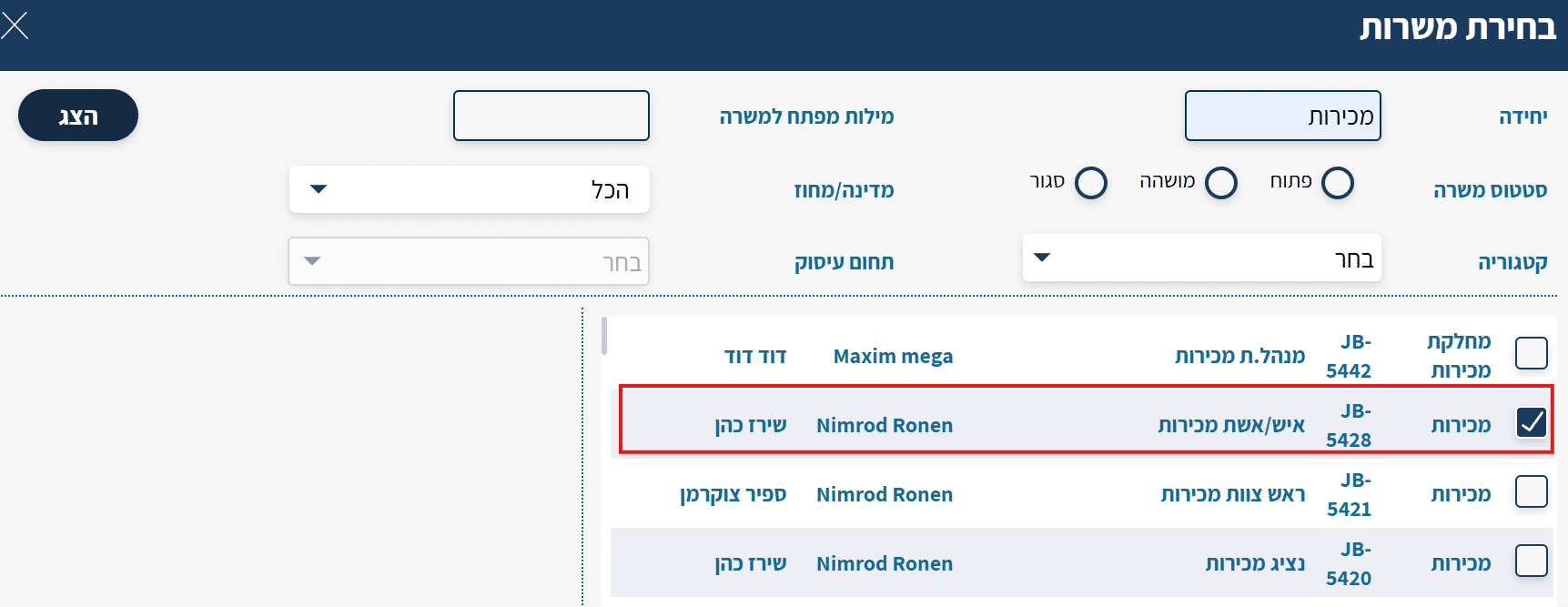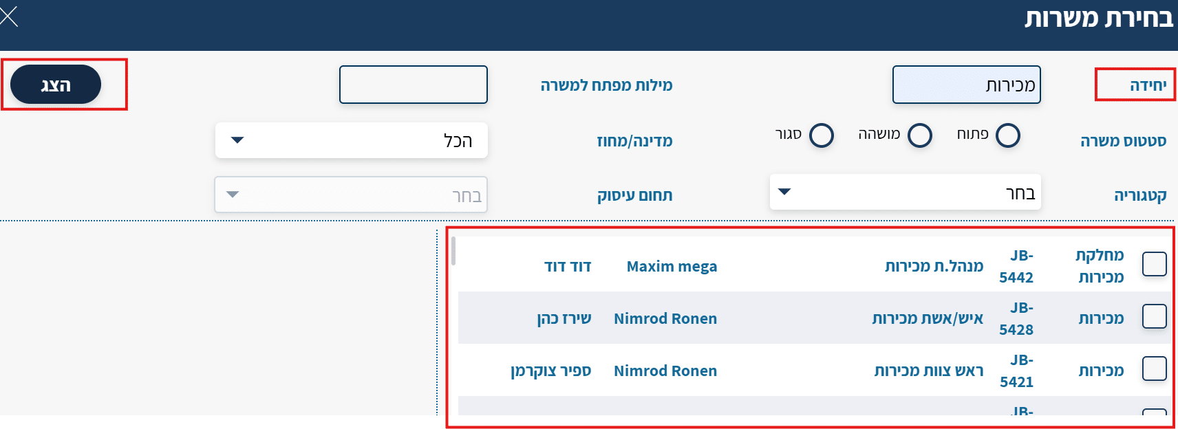 נלחץ על הצג — המערכת תציג את כלל המשרות ביחידה