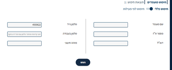 בחיפוש לפי מספר טלפון בדרך כלל תתקבל תוצאה אחת בלבד.