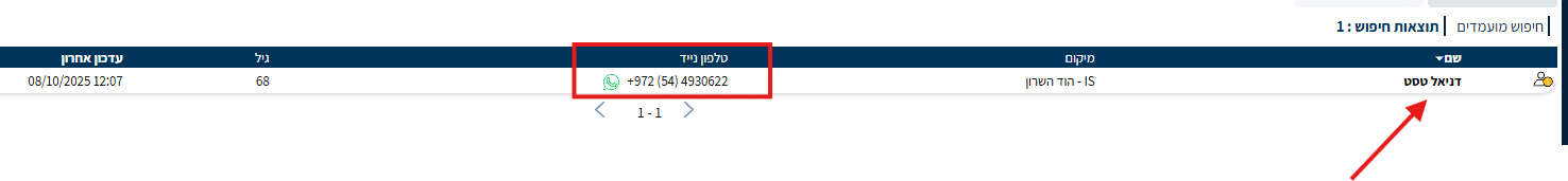 במסך החיפוש אתרו את השדה “טלפון נייד”