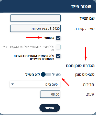 4. לאחר מכן יופיע חלון לשמירת הצייד והפעלת הסוכן החכם. סמנו את הצ’קבוקס “אוטומטי” ולחצו על אישור כדי להשלים את ההפעלה.